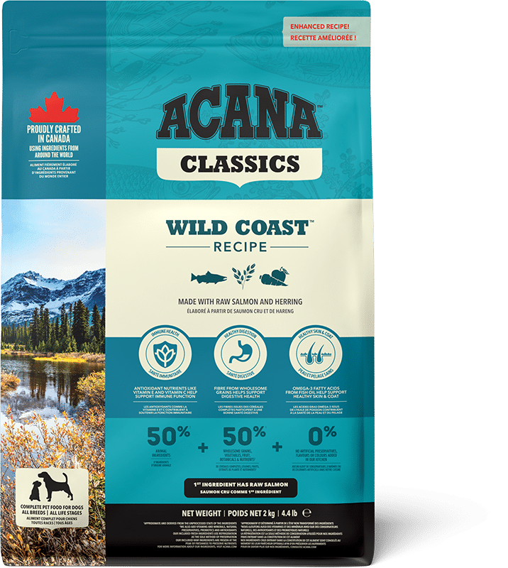 ACANA Wild Coast recipe is formulated to meet the nutritional levels established by the AAFCO Dog Food Nutrient Profiles for all life stages.